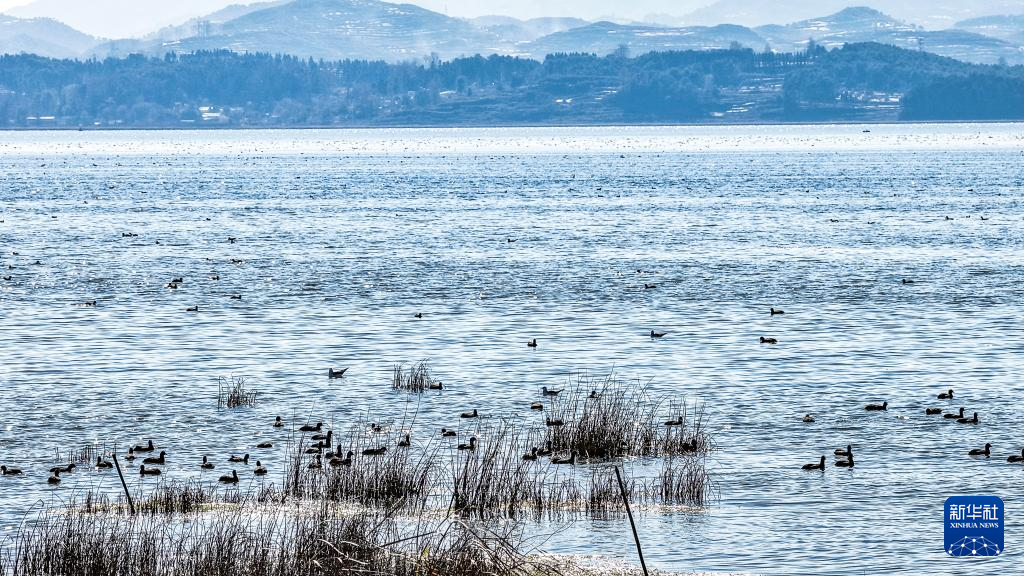 12月12日在贵州草海国家级自然保护区拍摄的越冬候鸟。新华社记者 陶亮 摄