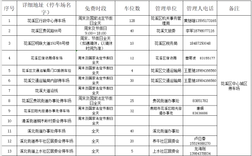 收藏一:花溪城区周边免费停车场↓↓↓