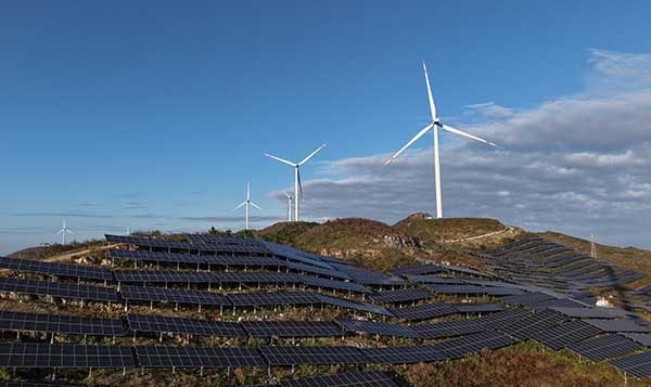 11月12日,在贵州省铜仁市松桃苗族自治县盘石镇拍摄的风电项目和光伏项目。