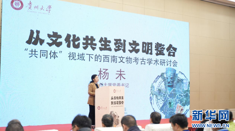 新华网贵阳12月20日电(汤子仪)12月20日,“从文化共生到文明整合——‘共同体’视域下的西南文物考古学术研讨会”在贵阳市花溪迎宾馆启幕。贵州大学党委书记杨未在开幕式致辞时,结合西南考古丰硕成果与贵大实践,阐释了考古工作在铸牢中华民族共同体意识中的重要意义。