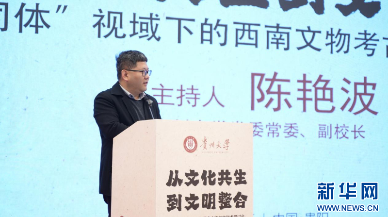 新华网贵阳12月20日电(汤子仪)12月20日,“从文化共生到文明整合——‘共同体’视域下的西南文物考古学术研讨会”在贵阳市花溪迎宾馆启幕。作为会议主持人之一,贵州大学党委常委、副校长陈艳波教授出席开幕式并发言。