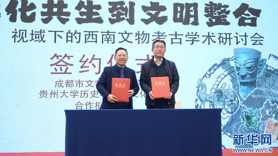 贵州大学历史与民族文化学院和成都市文物考古研究院签署合作框架协议。新华网 卢志佳 摄