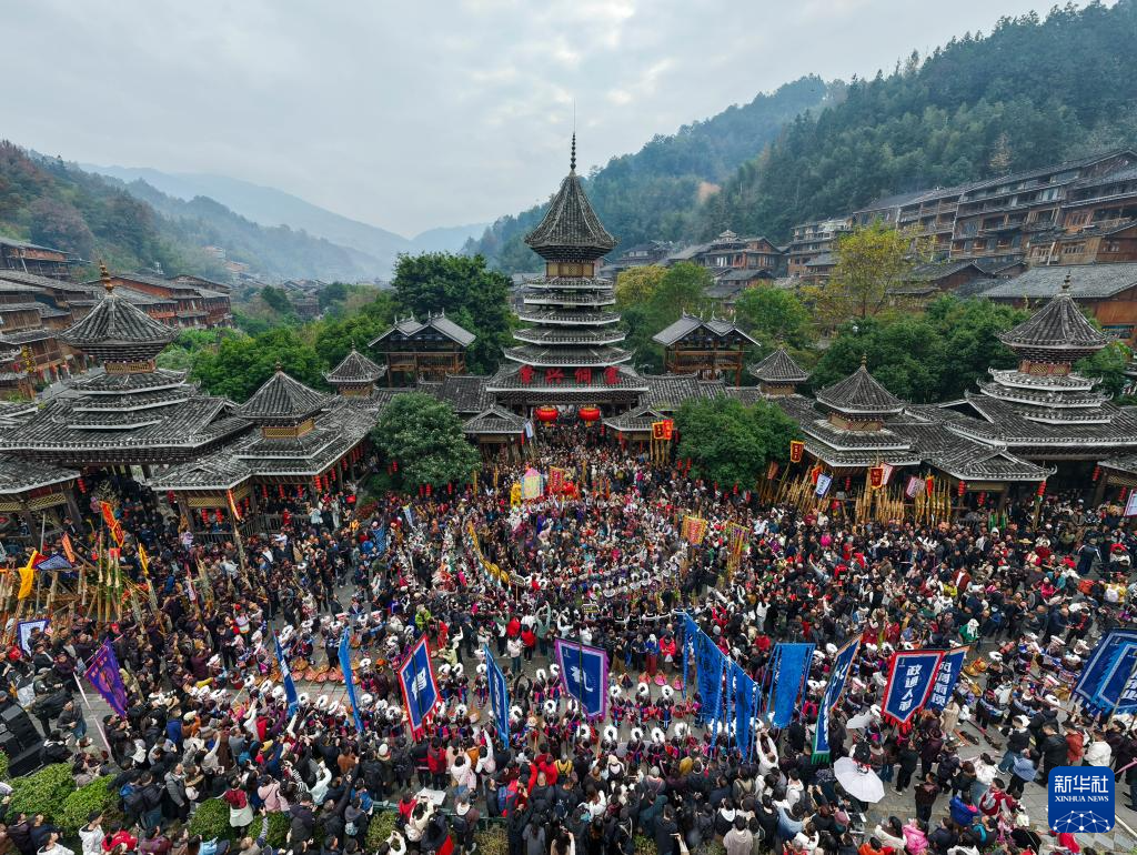 12月20日,在贵州省黔东南州黎平县肇兴侗寨,当地举办侗年庆祝活动。新华社发(龙建睿摄)