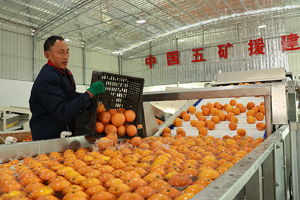 1400多万元资金,除用于帮扶腾溪村、建设村的水、路等基础设施外,更多投入到了潮砥脐橙产业的发展中。从补苗种植到基地管理,从病虫害防治到果子采摘,再到分拣销售,中国五矿提供了全程保姆式服务。