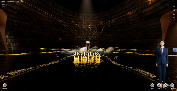 “全民普法40年·贵州云展馆”综合运用3D建模、元宇宙场景构建、人工智能交互等前沿技术,创新搭建“普法历程、普法内容、普法方式、人物故事、产品展陈、市州亮点、互动交互”七大主题展厅,系统梳理并生动呈现了从“一五”到“八五”普法期间贵州的普法发展之路。