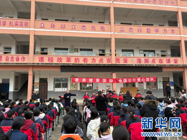 全国公仆爱心团队在枫香乡九年制学校开展捐资助学活动。新华社记者 李凡 摄