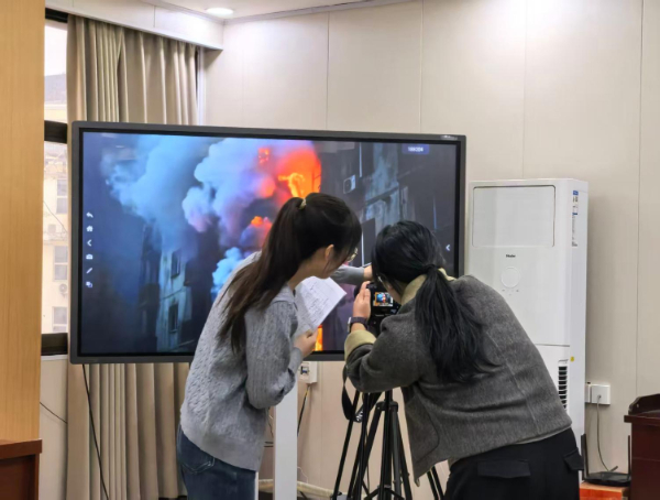 小张带领同事共同拍摄《应急逃生科普小课堂》