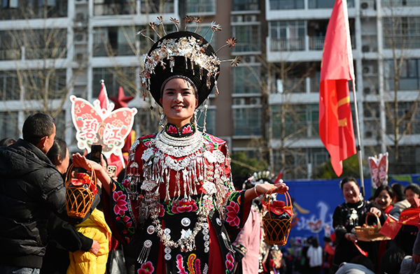 12月28日,铜仁市女企业家协会第三届第二次会员大会暨松桃村晚—“晚蝶舞苗疆·巾帼共赢 ”主题年会活动现场,人们在开展农特产品展销。