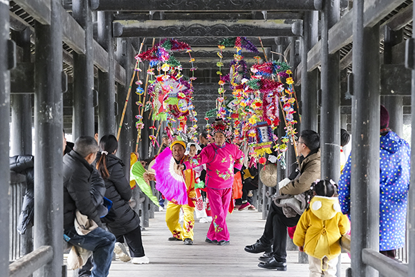 “四中全会喜讯传,十五五扬帆……”12月29日,松桃苗族自治县大路镇大路风雨桥上,茶灯队用轻快的唱腔,将党的二十届四中全会精神编成朗朗上口的茶灯小调,和着乡音,句句唱在村民心坎上。