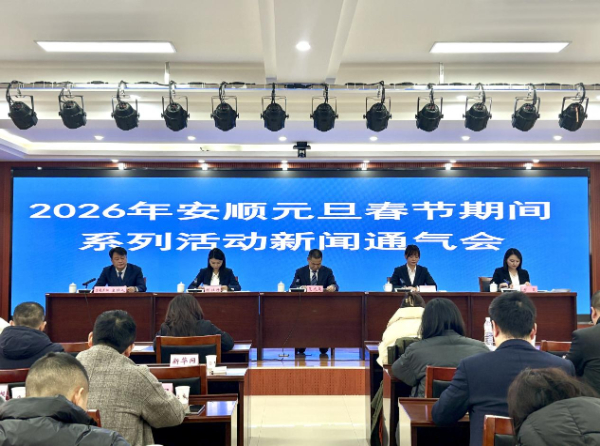 新华网贵阳12月31日电(汤子仪)12月30日,安顺市2026年元旦春节期间系列活动新闻通气会在安顺市体育训练中心召开。安顺市文体广电旅游局党组书记、局长范成荣出席通气会并发布活动详情,向全社会发出诚挚邀请,邀八方宾客共赴一场集山水之美、民俗之韵、烟火之味于一体的节日盛宴。