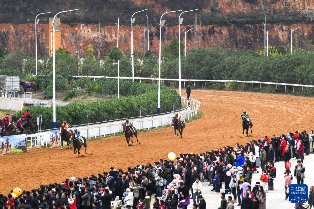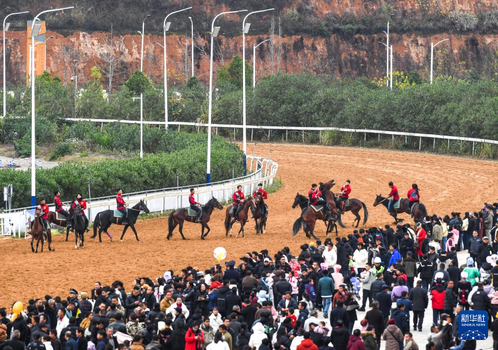 1月1日,人们在贵州省三都水族自治县观看“村马”比赛。新华社记者 杨文斌 摄