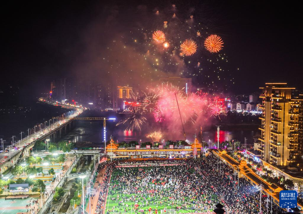 1月2日,人们在活动现场观看烟花表演(无人机照片)。新华社记者 杨文斌 摄