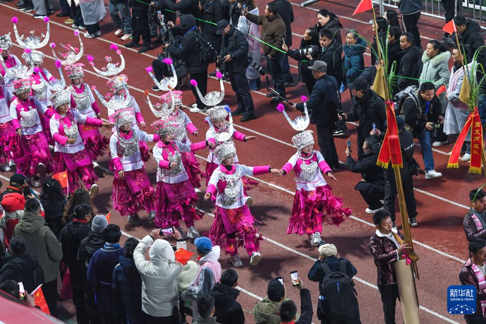 1月2日,苗族群众参加“村超”大巡游活动。新华社记者 杨文斌 摄