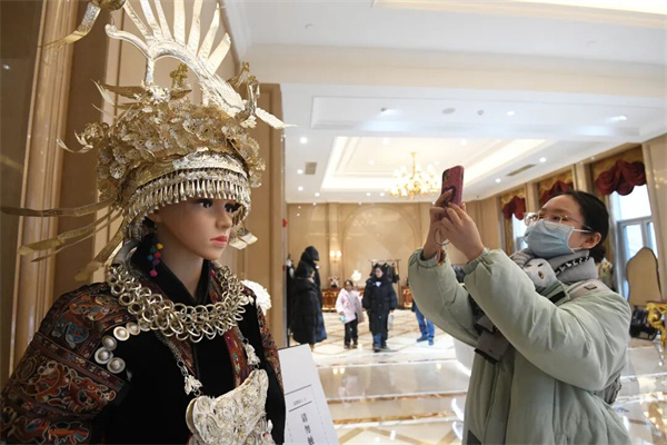 1月2日,市民游客在贵阳花果园国际文化艺术交流中心欧东花民族服饰博物馆(珍品馆)参观。