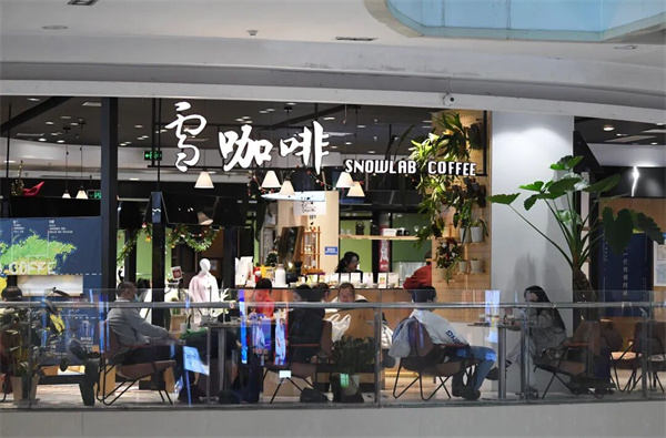 市民游客在商场内的咖啡馆消费