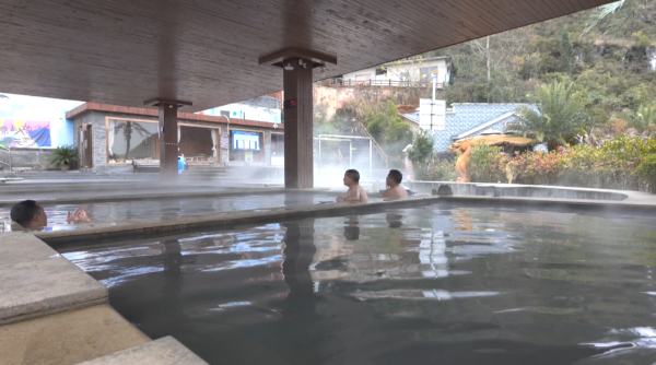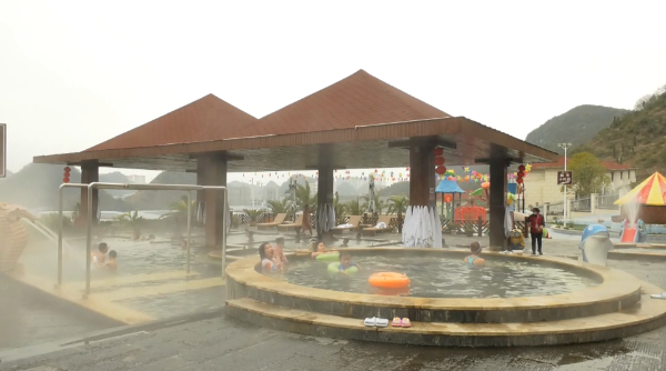 游客张先生说:“我们从一号就开始过来泡起的,是住在酒店里泡,这边的温泉是天然温泉,并且是含有偏硅酸,属于医疗级温泉,所以我们都是充钱在这边消费。”