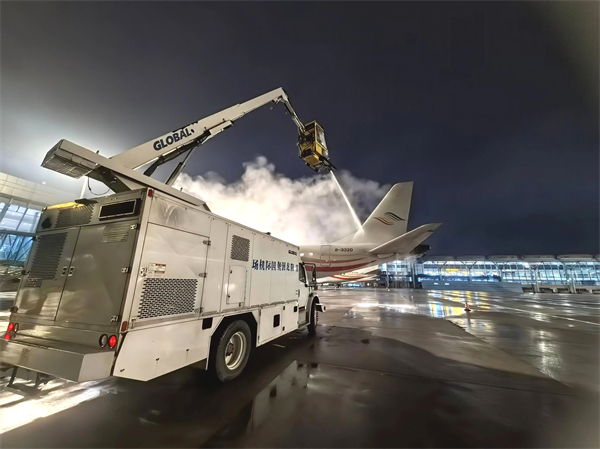机场保障人员在对飞机进行除冰。(贵阳机场供图)