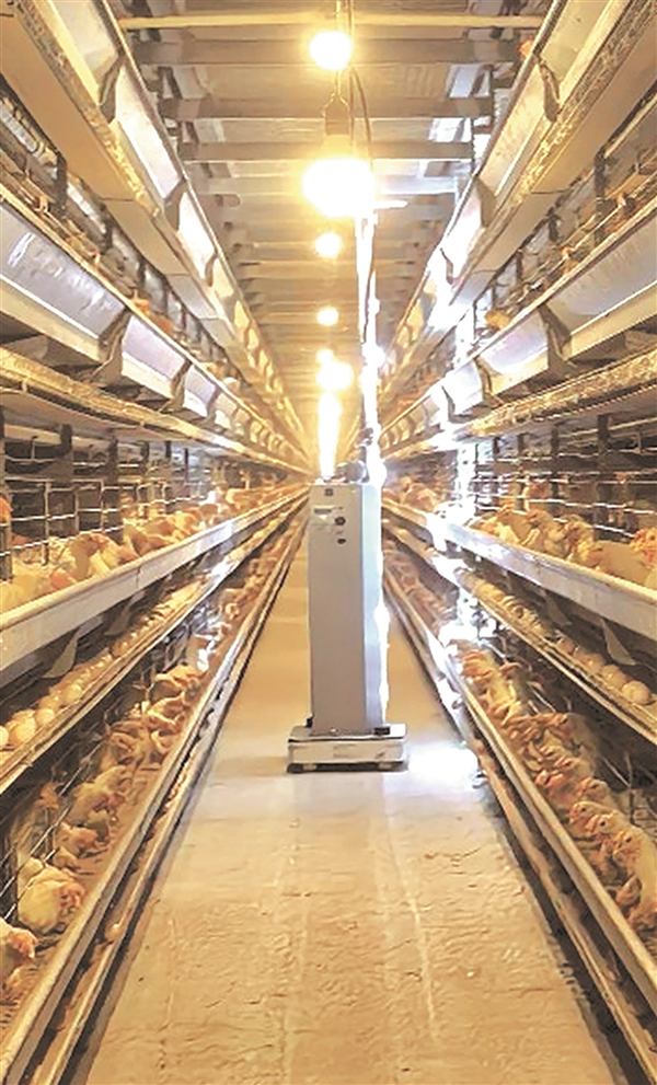 鸡舍内的智能化机器人在巡检。(受访公司供图)