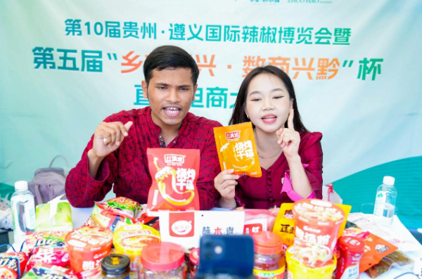 图为学校留学生在遵义国际辣椒博览会现场直播