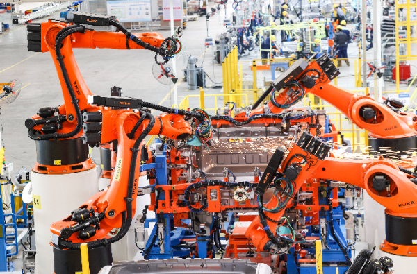 任何卓越的设计与研发,最终都需要强大的制造体系来兑现。贵州长江汽车位于贵安新区的智能化生产基地,正是其将蓝图转化为现实的核心支撑。这座占地面积约1800亩的现代化工厂,集成了完整的冲压、焊装、涂装、总装四大工艺生产线。通过深度融合MES、ERP等数字化系统,企业实现了从订单到交付的全流程透明化与精细管理。生产线采用柔性化设计,可共线生产多平台车型,关键工序自动化率超过70%。(冲压车间自动化水平高达95%、涂装车间整体自动化水平达90%)