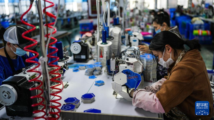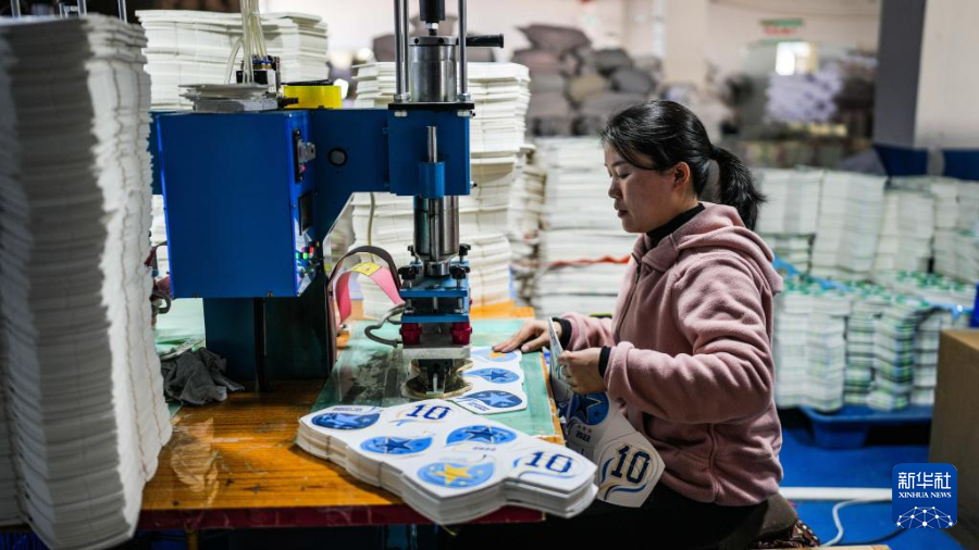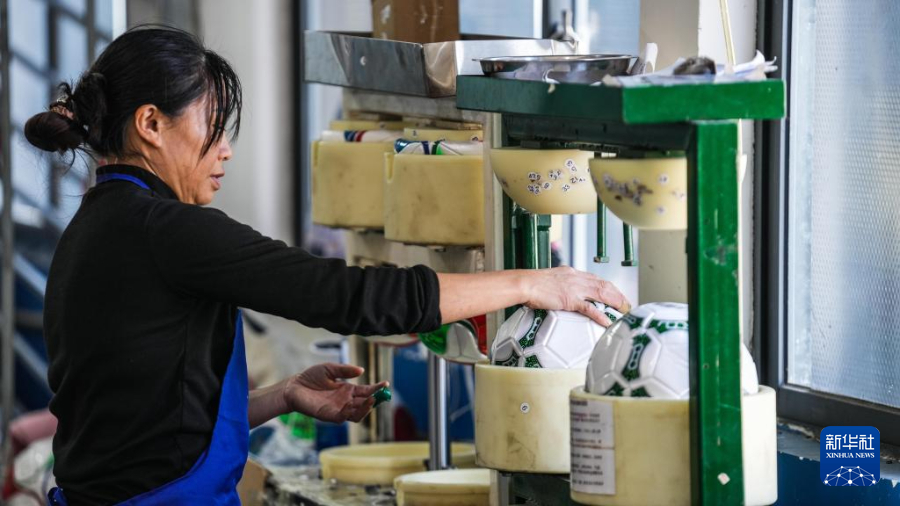 近期,位于贵州省罗甸县城西产业园的体育用品企业开足马力,生产足球。园区体育用品企业吸收200余名农村剩余劳动力在“家门口”就业,生产的足球远销巴西、古巴、南非等海外市场。