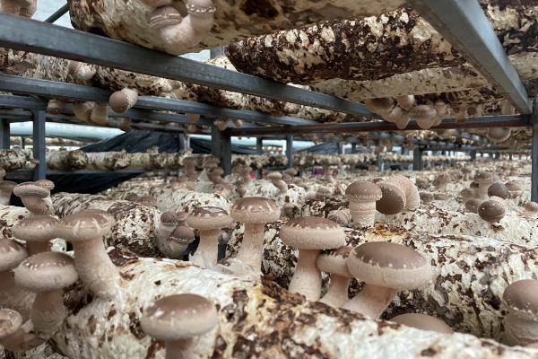 台江县南宫镇交宫村食用菌基地香菇纷纷冒出头。(姜学维 摄)