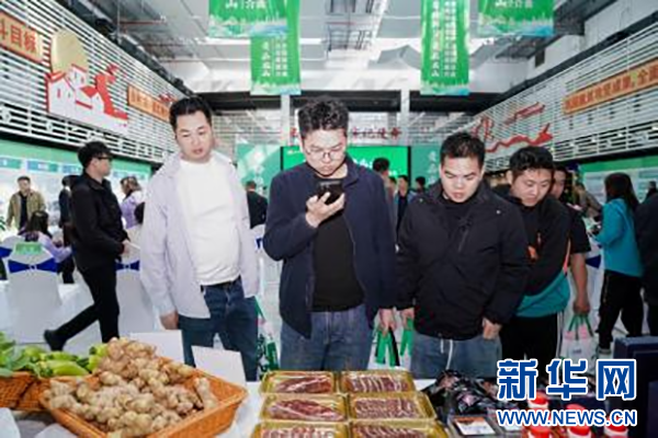 现场嘉宾在贵州农产品展区了解相关产业发展情况。新华网发