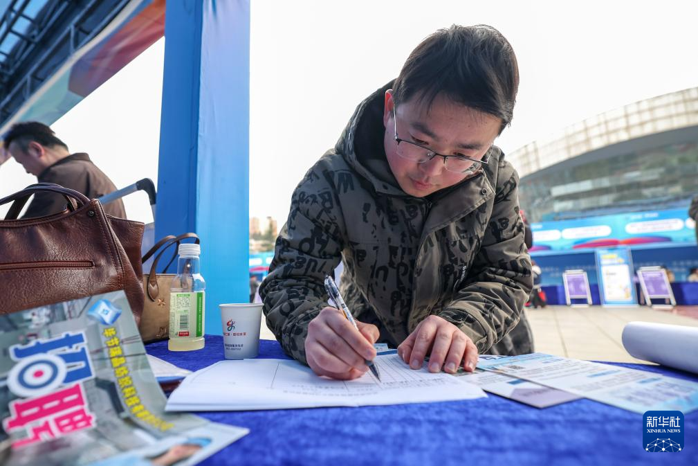 1月16日,求职者在贵州省2026年“春风行动”暨五省联动就业服务季活动现场登记求职意向表。新华社发(陈曦 摄)