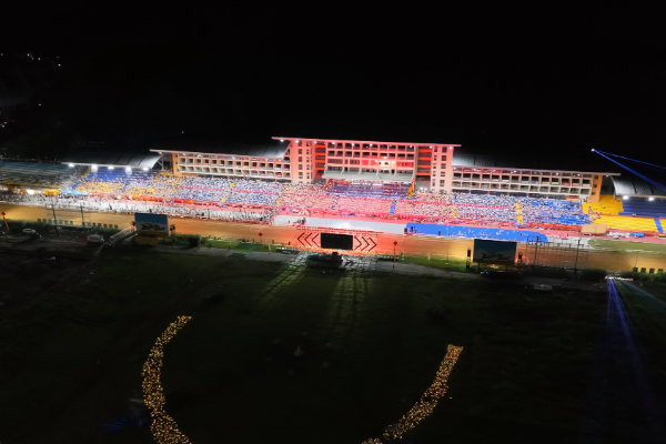 “贵州村马”已经成为三都的闪亮名片,赛马活动不仅丰富了群众生活,更以文体旅深度融合的新模式,为县域经济注入了蓬勃活力。2025年8月9日晚,三都县赛马城灯火辉煌,2025年“贵州村马”夜跑点燃夏夜激情。数万名市民与游客齐聚一堂,体验这场速度与激情的盛宴。为迎接八方来客,三都县开启“宠粉”模式,在赛马场入口处,身着传统服饰的水族姑娘手捧米酒,吟唱悠扬婉转的水族敬酒歌,向远道而来的宾客致以最诚挚的欢迎。伴随着阵阵铜鼓声,浓郁的民族风情扑面而来,让初到现场的游客瞬间沉浸其中。