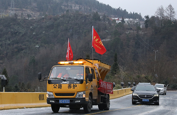 截至目前,贵州省松桃公路管理段累计出动应急抢险车辆14台次、党员干部职工36人次,布撒融雪剂12余吨,成功救助被困车辆20余辆,提供便民服务200余人次,有效保障了辖区公路的安全畅通,让“党建红”与“养护橙”在风雪中交相辉映,成为黔东大地最动人的风景。(梁博儒)