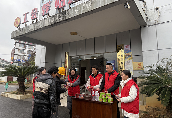 在孟溪户外劳动者驿站内,一面鲜红的党旗迎风飘扬,党员志愿服务队开展的“情满旅途”便民活动正温情上演。驿站内暖意融融,热水、方便面、应急药品等物资整齐摆放,党员志愿者们面带微笑,主动为过往司乘人员和滞留群众提供帮助。“师傅,喝杯热水暖暖身子,吃桶热面垫垫肚子!”“前面部分路段仍有薄冰,建议您安装防滑链后再前行,有任何需要都可以跟我们说。”一句句暖心话语,如冬日里的暖阳,驱散了刺骨寒意,让过往群众倍感温暖。