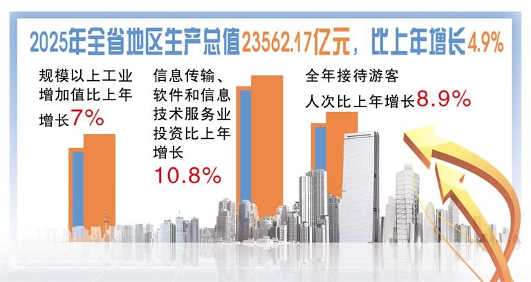 1月21日,记者从省政府新闻办召开的新闻发布会上获悉,根据地区生产总值统一核算结果,2025年全省地区生产总值23562.17亿元,按不变价格计算,比上年增长4.9%,经济运行总体平稳、稳中有进。