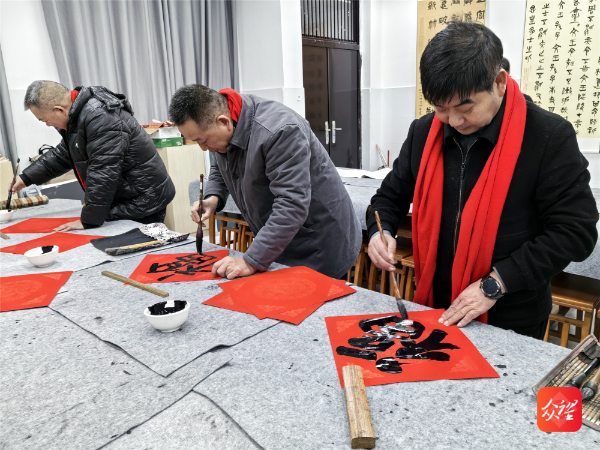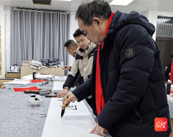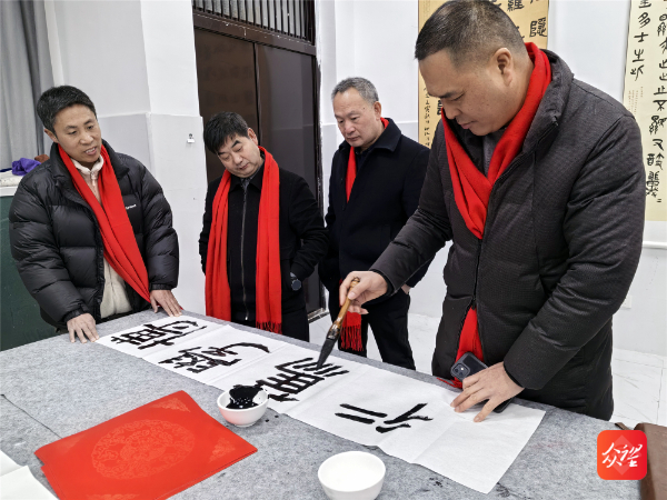 墨香在空气中弥漫开来,红色的纸张整齐铺展,书法家们凝神挥毫,将对书法艺术的理解融入笔墨之中,青年教师围绕一旁,观看名家挥毫的技巧与姿态,时而轻声交流,时而模仿笔法。纷纷表示:“以前只是模仿字帖,今天得到了名家的现场指导,才明白了什么是‘力透纸背’的真正含义。”