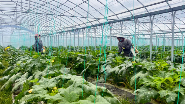 工人在贵州蔬菜集团的蔬菜保供基地内采摘西葫芦。(受访对象供图)