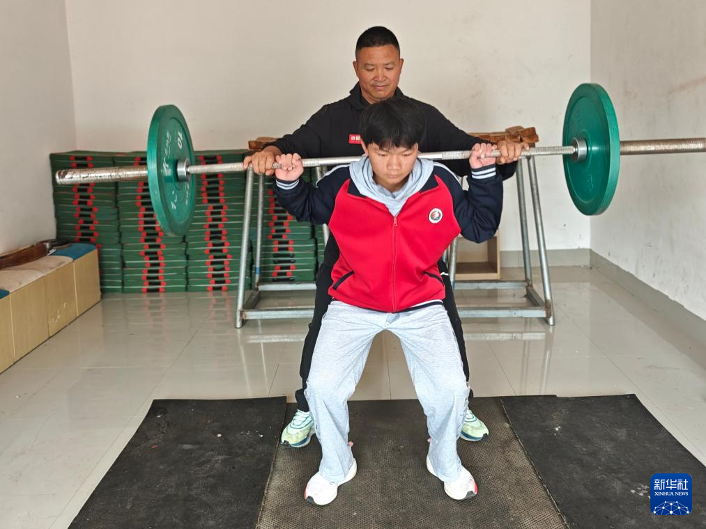 王斌在指导学生练习深蹲。新华社记者 郑明鸿 摄