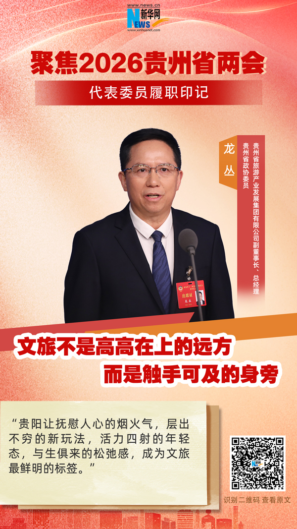 “文旅不是高高在上的远方,而是触手可及的身旁。”贵州省政协委员、贵州省旅游产业发展集团有限公司副董事长、总经理龙丛1月26日上午在贵州省政协十三届四次会议开幕前举行的首场“委员通道”上,分享了他对打造“多彩贵州”文旅品牌的思考。