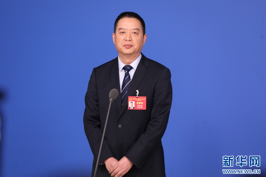 蒙祖德在“代表通道”接受采访。新华网 周远钢 摄
