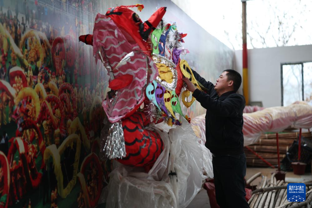代鑫在查看一条已经制作完成的毛龙(1月27日摄)。新华社记者 刘续 摄