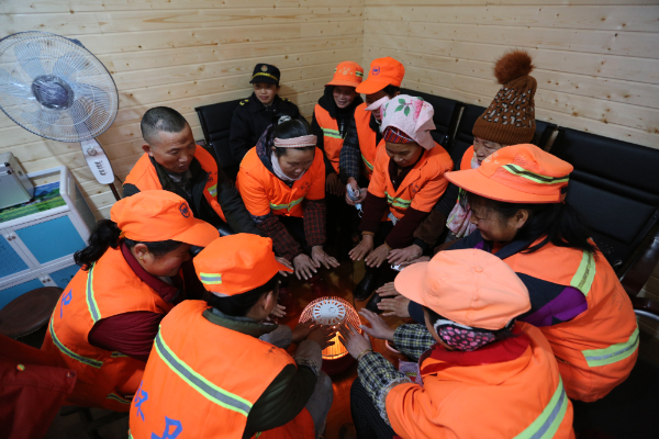 “热天可以乘凉,又有板凳坐,落雨天又能躲雨,冬天来了又有火烤,很方便我们大家。”环卫工人龙世环感动地说。