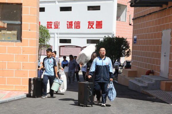 县第五中学的学生搬入新宿舍。