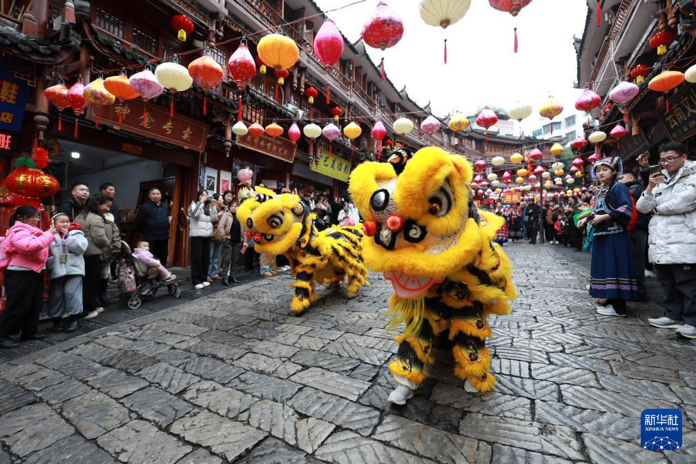 2月5日,人们在贵州省都匀市石板街观看布依族婚俗表演。