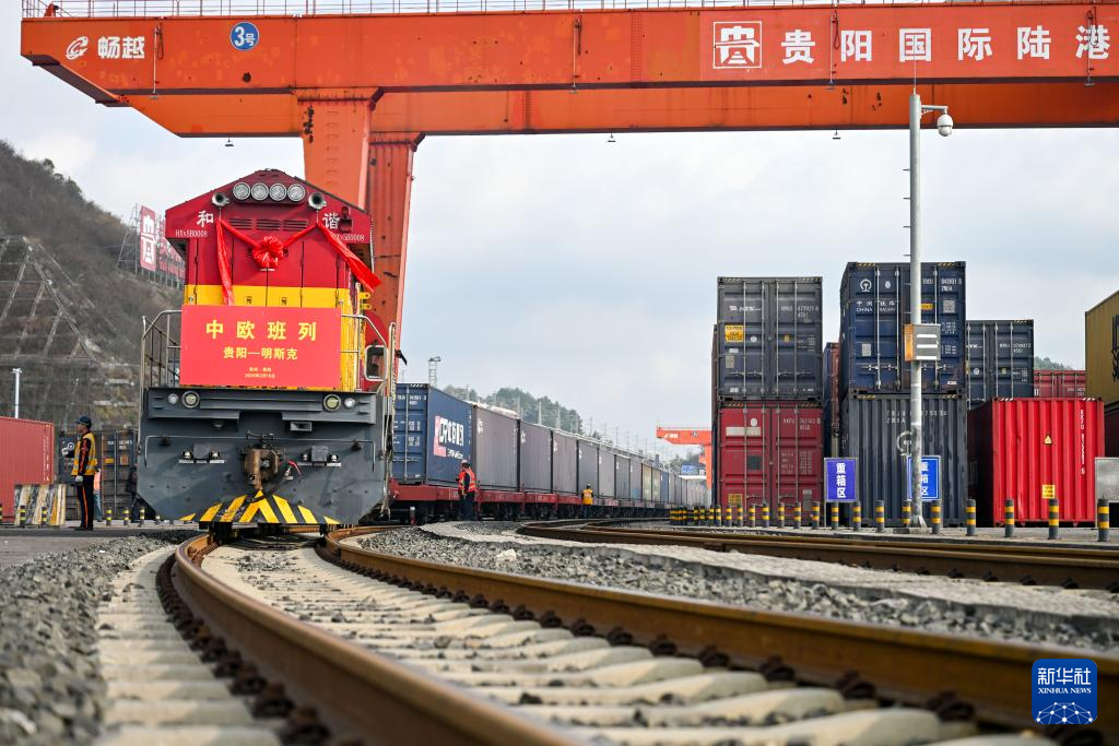 2月15日,一列中欧班列从贵阳国际陆港都拉营站缓缓驶出,标志着贵州省2026年开行的首趟中欧班列正式启程,为“贵州造”汽车配件驶向欧洲市场开辟更高效便捷的国际通道。此趟中欧班列共承运55个集装箱,主要运输新能源汽车及配套零部件,将经阿拉山口口岸出境,一路向西驰骋,最终抵达白俄罗斯。