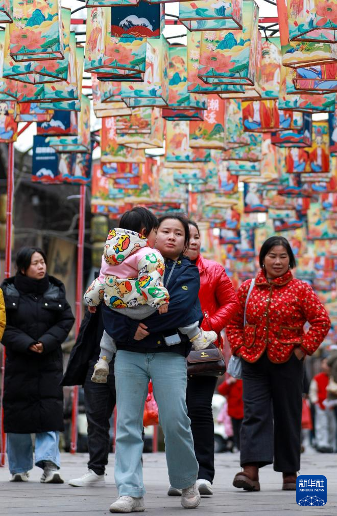 大年初一,人们走出家门,放松休闲,感受浓浓的春节氛围。