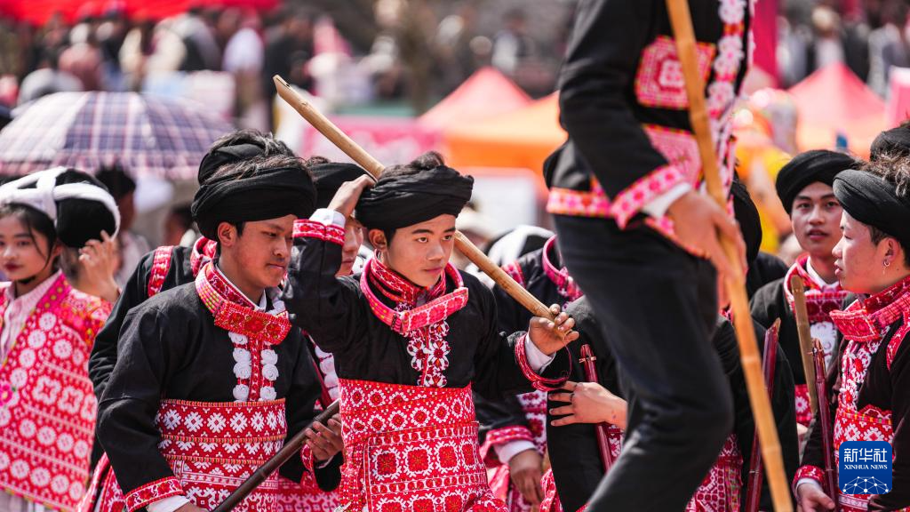 2月26日,在贵州省六盘水市六枝特区梭戛苗族彝族回族乡高兴村跳花场,苗族群众准备上场表演。新华社记者 陶亮 摄