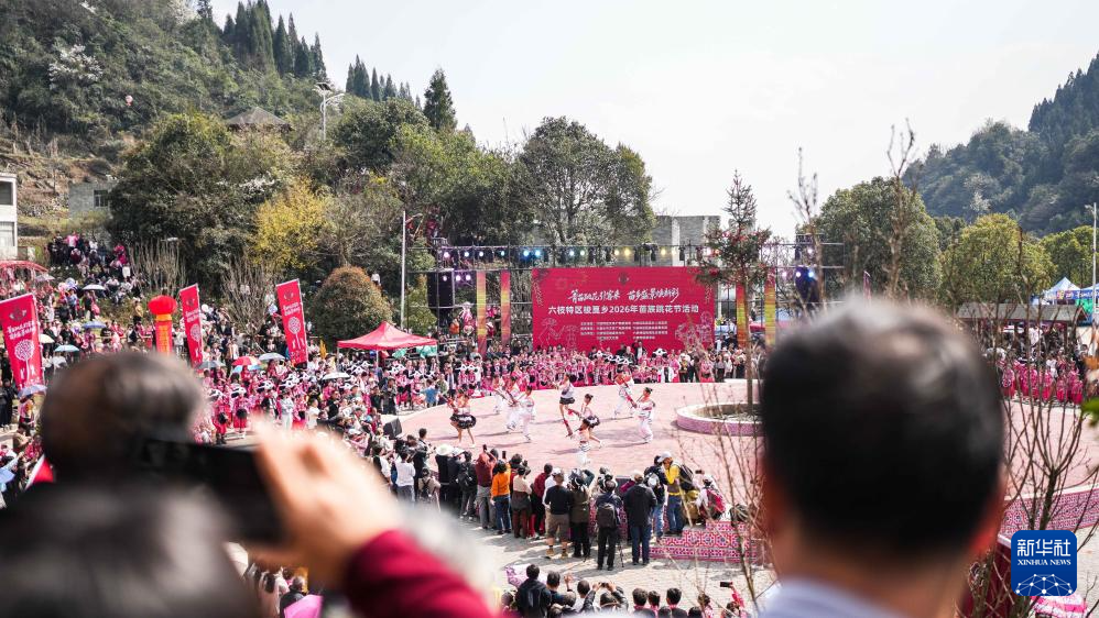 2月26日,在贵州省六盘水市六枝特区梭戛苗族彝族回族乡高兴村跳花场,苗族群众在表演舞蹈。