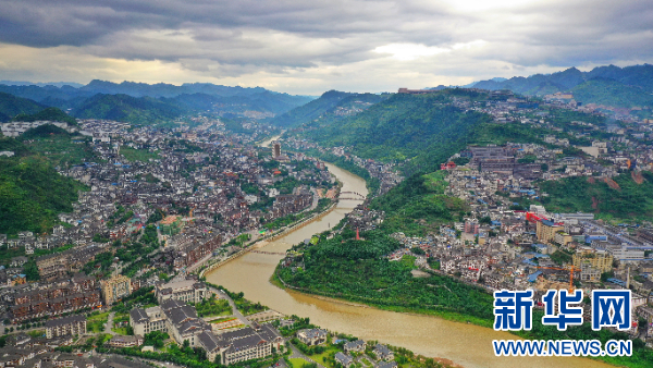 航拍赤水河畔的茅台镇。新华网 卢志佳 摄