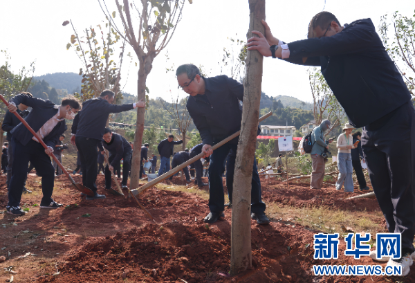 新华网贵阳3月14日电(卢志佳)三月春风至,植绿正当时。3月12日,2026年“中国茅台·国之栋梁”生态守护公益行动在贵州仁怀启动,中国贵州茅台酒厂(集团)有限责任公司千余名干部职工挥锹铲土,种下新一年的希望。同时,设在云南镇雄、四川古蔺的分会场同步启动公益行动,三省联动共同谱写赤水河的“生态序曲”。