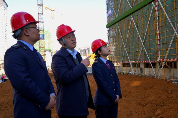 纳雍县税务局工作人员到贵州顶佳置业有限公司了解楼盘开发建筑情况。(赵念祖 摄)