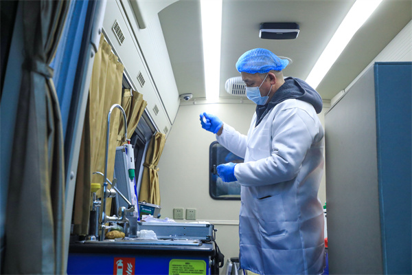 工作人员对学校原材料进行检测。(丁伟鑫 摄)