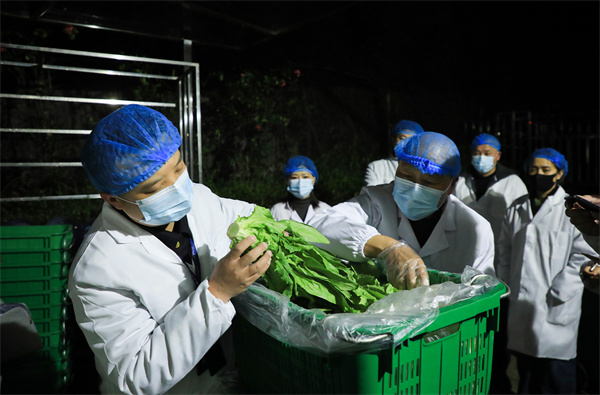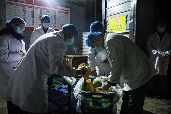 检查配送食材的外观、新鲜度。(丁伟鑫 摄)